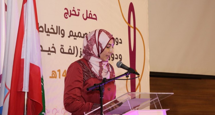 لتحدّثنا بعدها الطالبة الخريجة هنادي الصالح، في كلمة الخريجات، شاكرةً مشغل خيوط على جهده بتقديم الخبرات العلمية والعملية للطالبات، كما وشكرت جمعية صلة على وقوفها الى جانب الطالبات وتأمين كل ما يلزمهن لإنجاح الدورة.