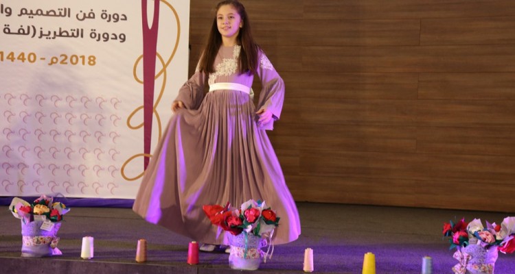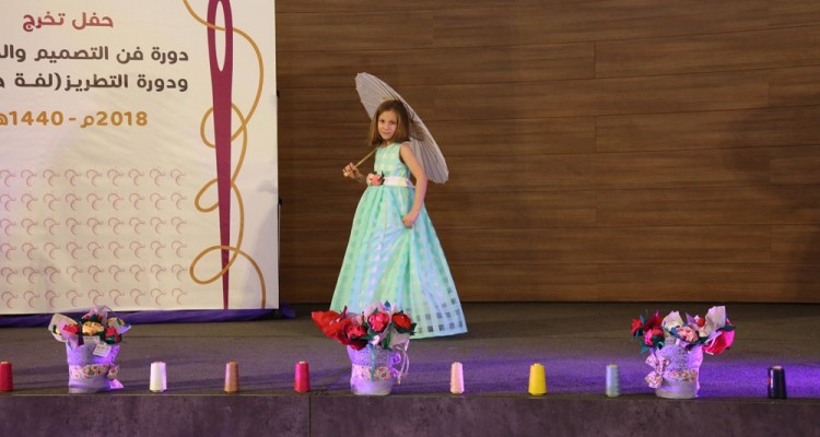 وبأجواء ملؤها السعادة والبراءة، قدّمت مجموعة من الأطفال عرض أزياءٍ لأثوابٍ تمت خياطتها بأيدي خريجات دورة فن التصميم والخياطة. وبعد انتهاء الفقرة، وزّع الاطفال على الحضور ورود أُعدت من بقايا القماش من انتاج الطالبات.