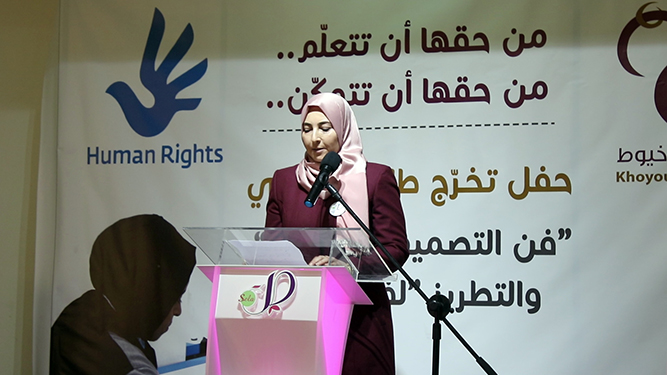 كما وكانت كلمة لطالبات دورة الخياطة ودورة التطريز شكرن فيها مشغل خيوط وجمعية صلة ومؤسسة أدارا Adara ومعلماتهنّ اللتان بذلتا الجهد لتعليمهن فن التصميم والتفصيل والخياطة وأسس التطريز..