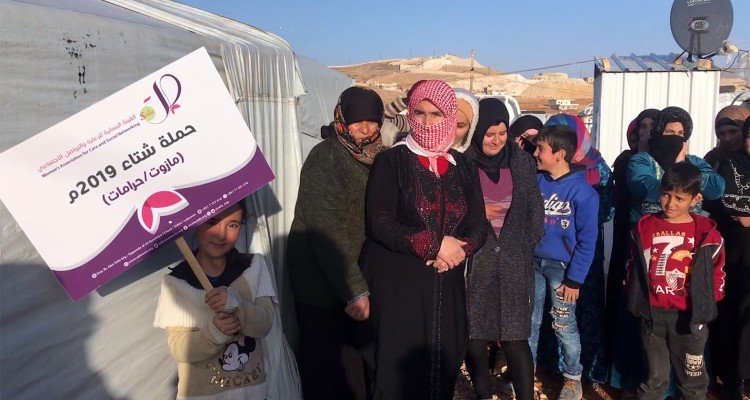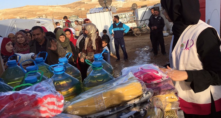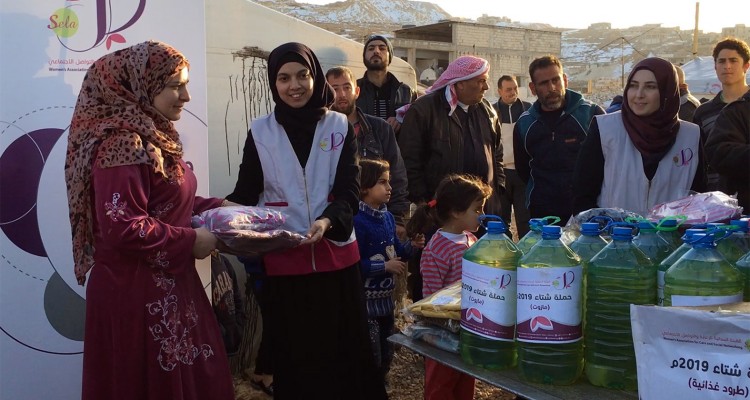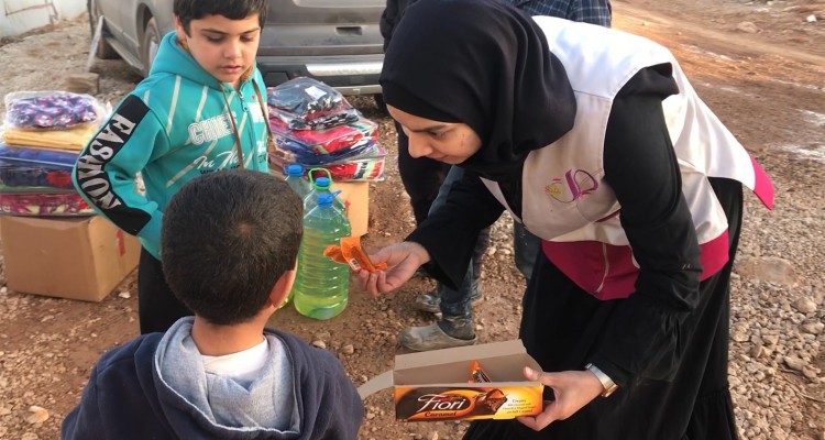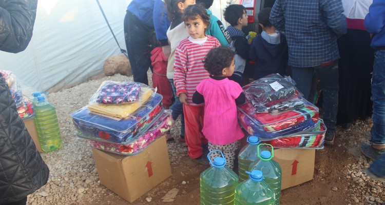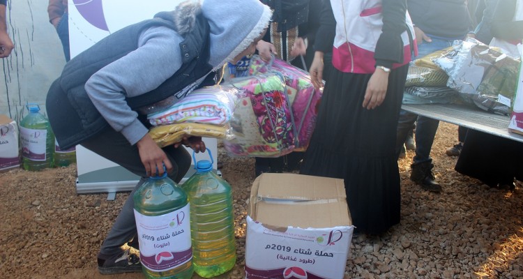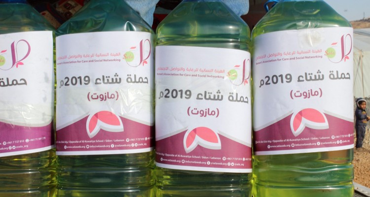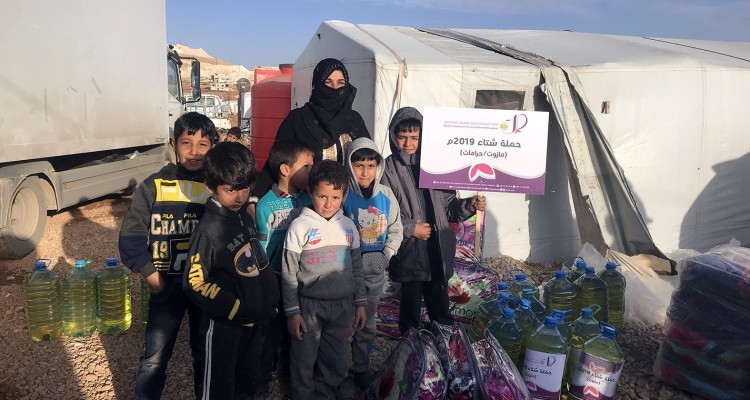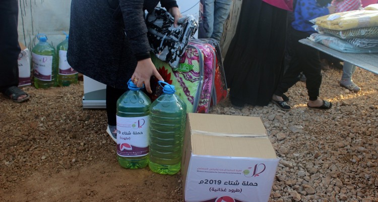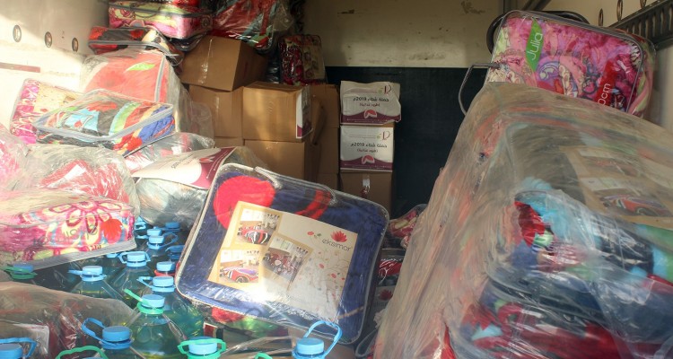 وكان لكلّ أسرة نازحة حصة من الحرامات والمازوت بتمويل من فاعلات خير من قطر. وكذلك طرد غذائي، بالاضافة لكسوة شتاء للأطفال والنساء من إنتاج مشغل خيوط.