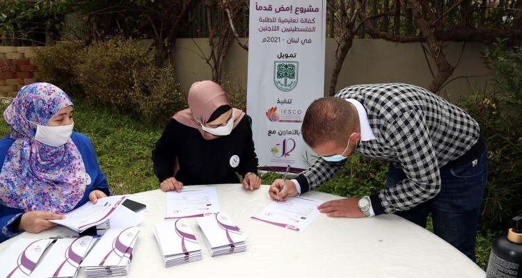 بتمويل كريم من الصندوق العربي للإنماء الاقتصادي والاجتماعي قدمت مؤسسة إيسكو وجمعية صلة منحاً دراسية لـ100 طالبة وطالبة من اللاجئين الفلسطينيين في لبنان من ذوي الأسر المتعففة، ضمن مشروع إمضِ قدماً، كما وأقامت حفلاً تكريمياً لهم تضمن كلمة لمؤسسة صلة وإيسكو وكلمة الطالبة المستفيدة من المشروع آية..