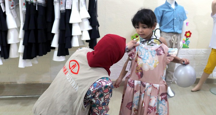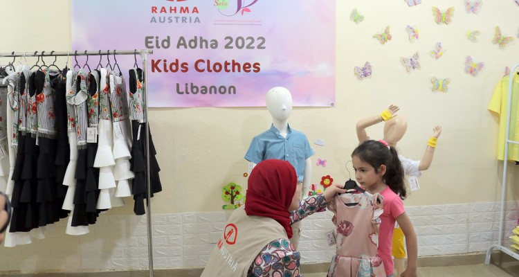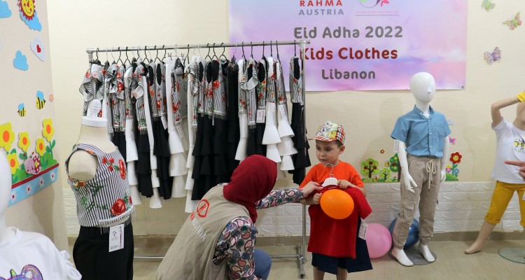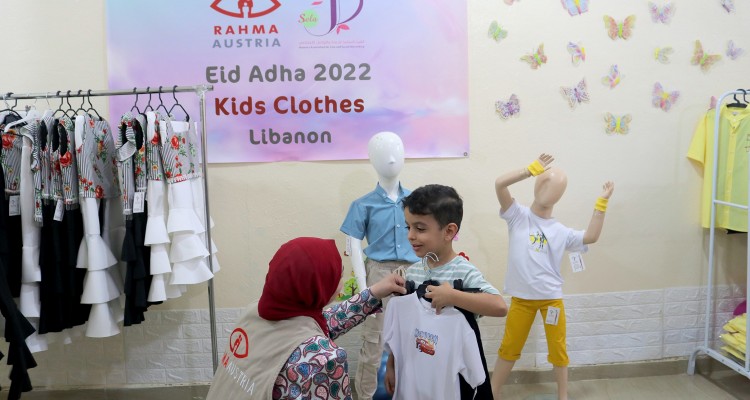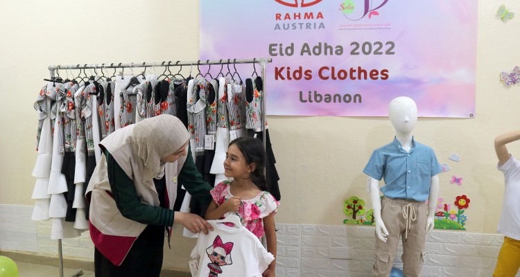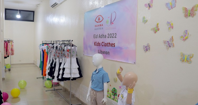 100 طفل من مدينة صيدا وضواحيها استفاد من مشروع كسوة عيد الأضحى للعام 2022 ضمن برنامج دانية الإغاثي بتمويل من مؤسسة الرحمة - النمسا، وتصميم وإنتاج مشغل خيوط..