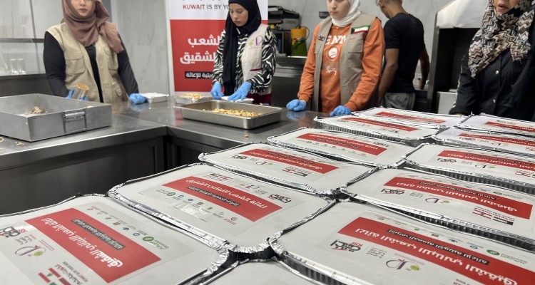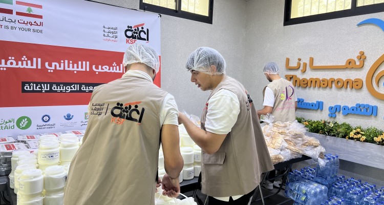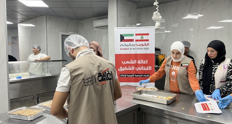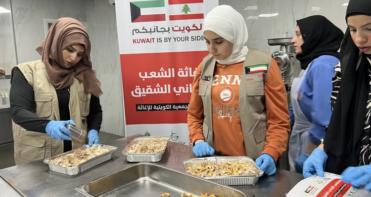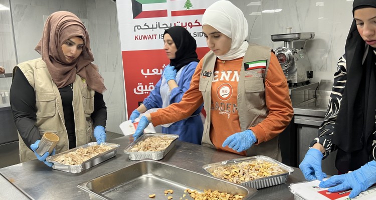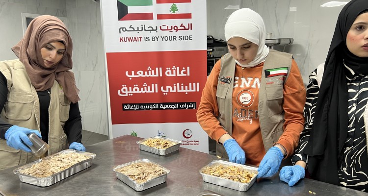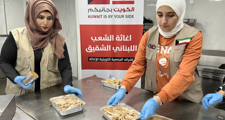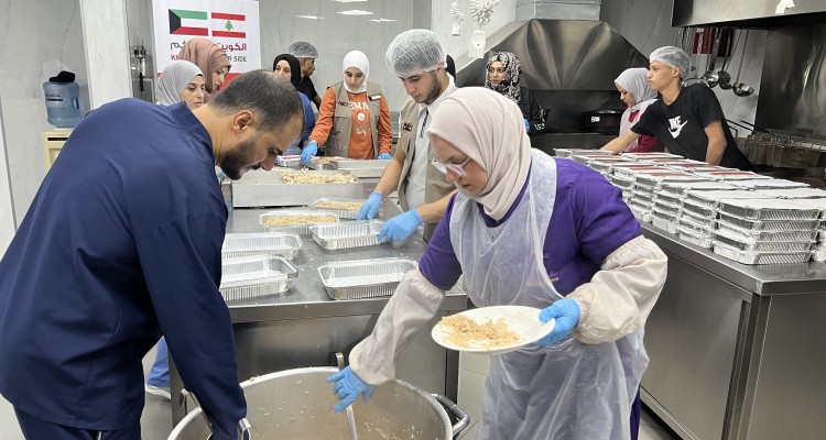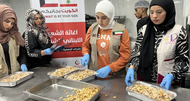 وجبات ساخنة للنازحين جراء حرب لبنان بتمويل كريم من الجمعية الكويتية للإغاثة
