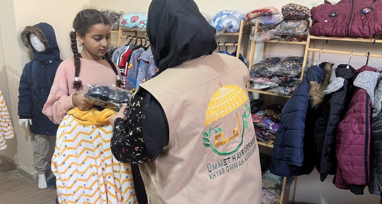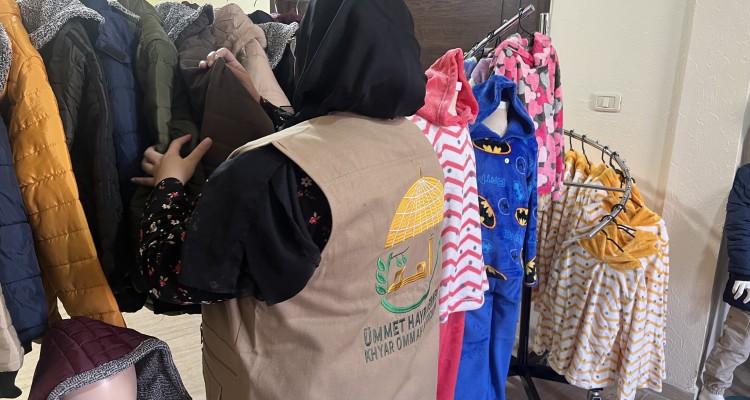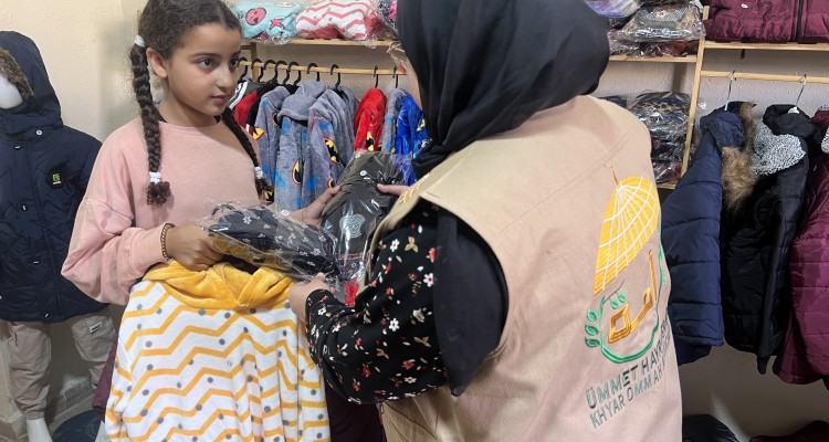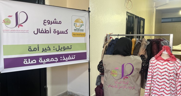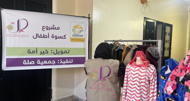 كسوة شتاء للأطفال النازحين بتمويل كريم من جمعية خير أمة