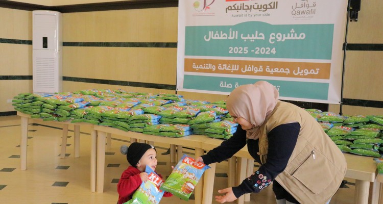 توزيع حليب الأطفال بتمويل كريم من مؤسسة "قوافل"